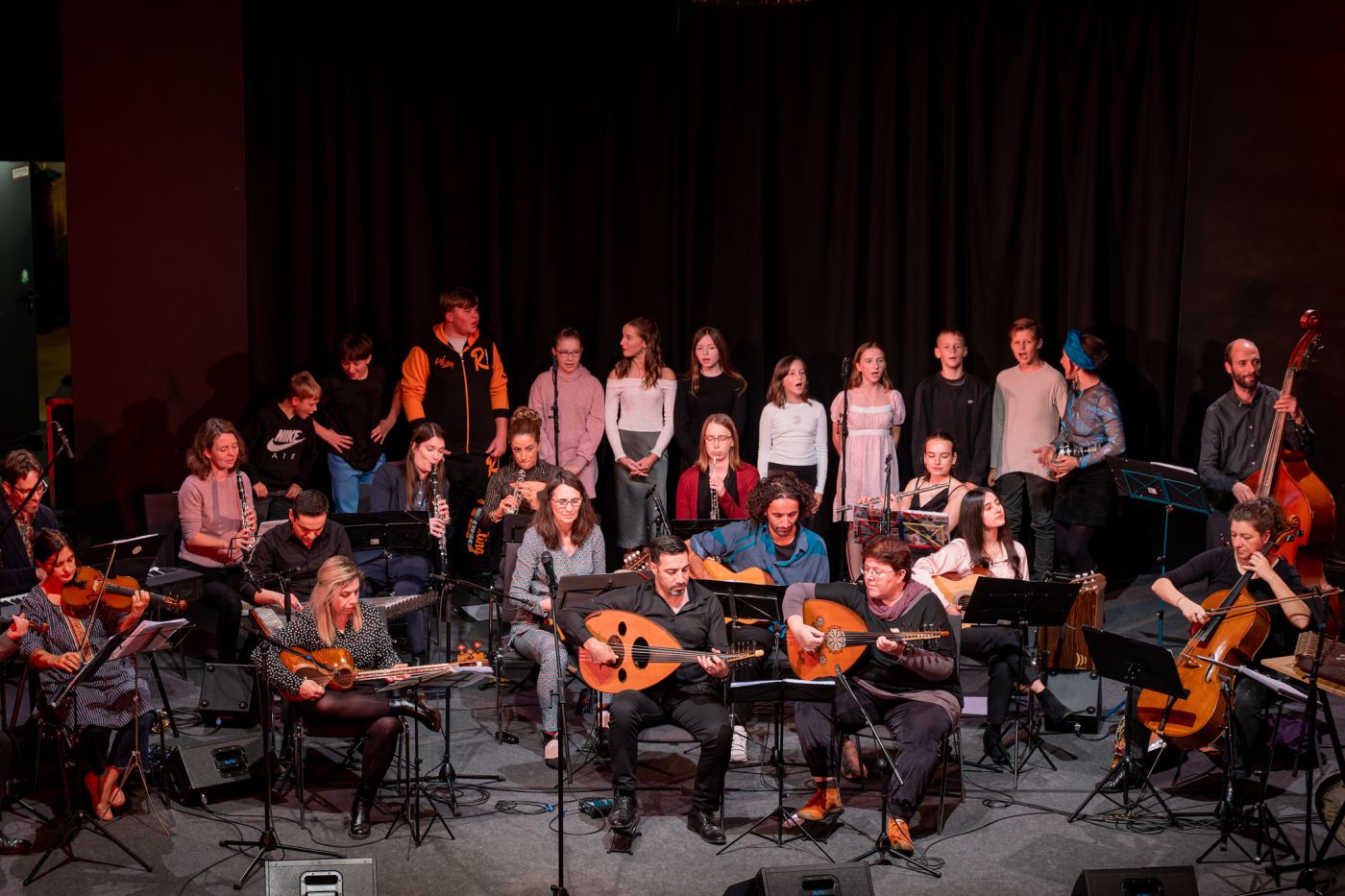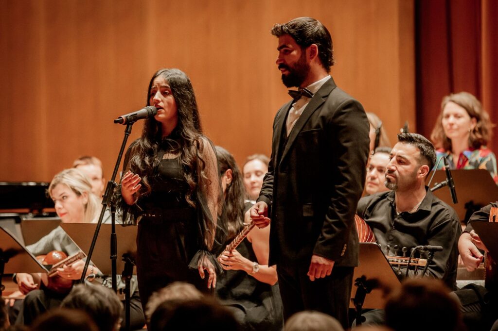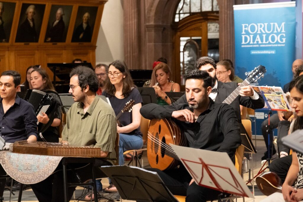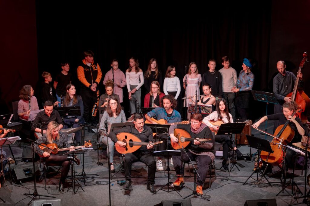 Musiker*innen aus Leipzig mit Wurzeln in aller Welt gestalteten ein Konzert zum Thema „Freundschaft“. Unter der künstlerischen Leitung von Ali Pirabi trafen Violine, Klarinette und Klavier auf Oud, Santur und Tar. Karolina Trybala (Gesang) und Selim Yildiz (Gesang, als Gast) bereicherten den Abend. Das Repertoire vereinte Melodien aus aller Welt – von populären jüdischen Stücken bis zu arabischen und persischen Melodien. Es war ein Abend voller Hoffnung, Vielfalt und musikalischen Begegnungen.