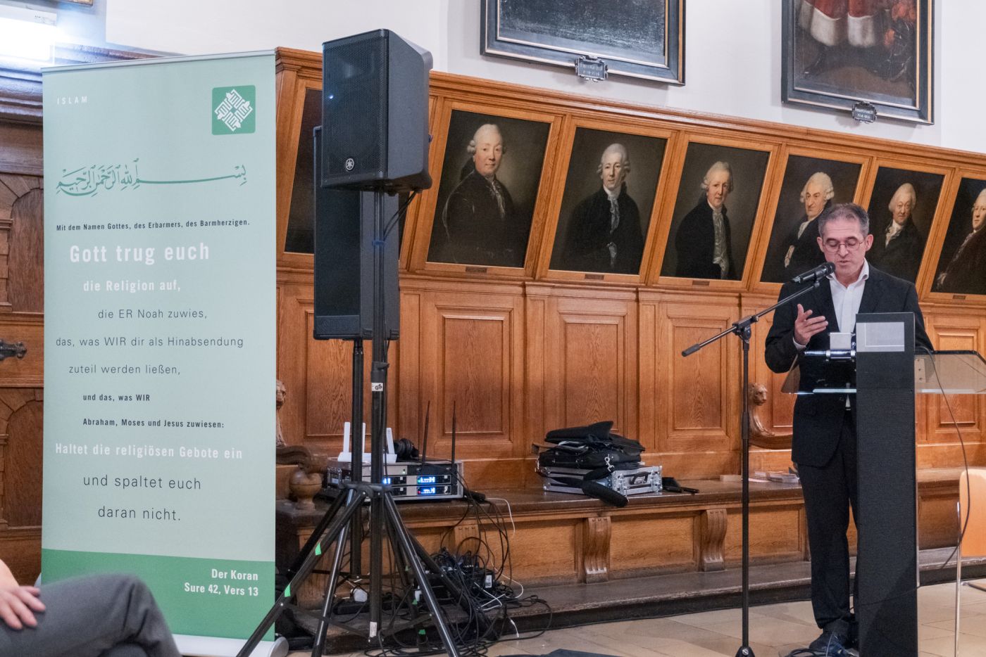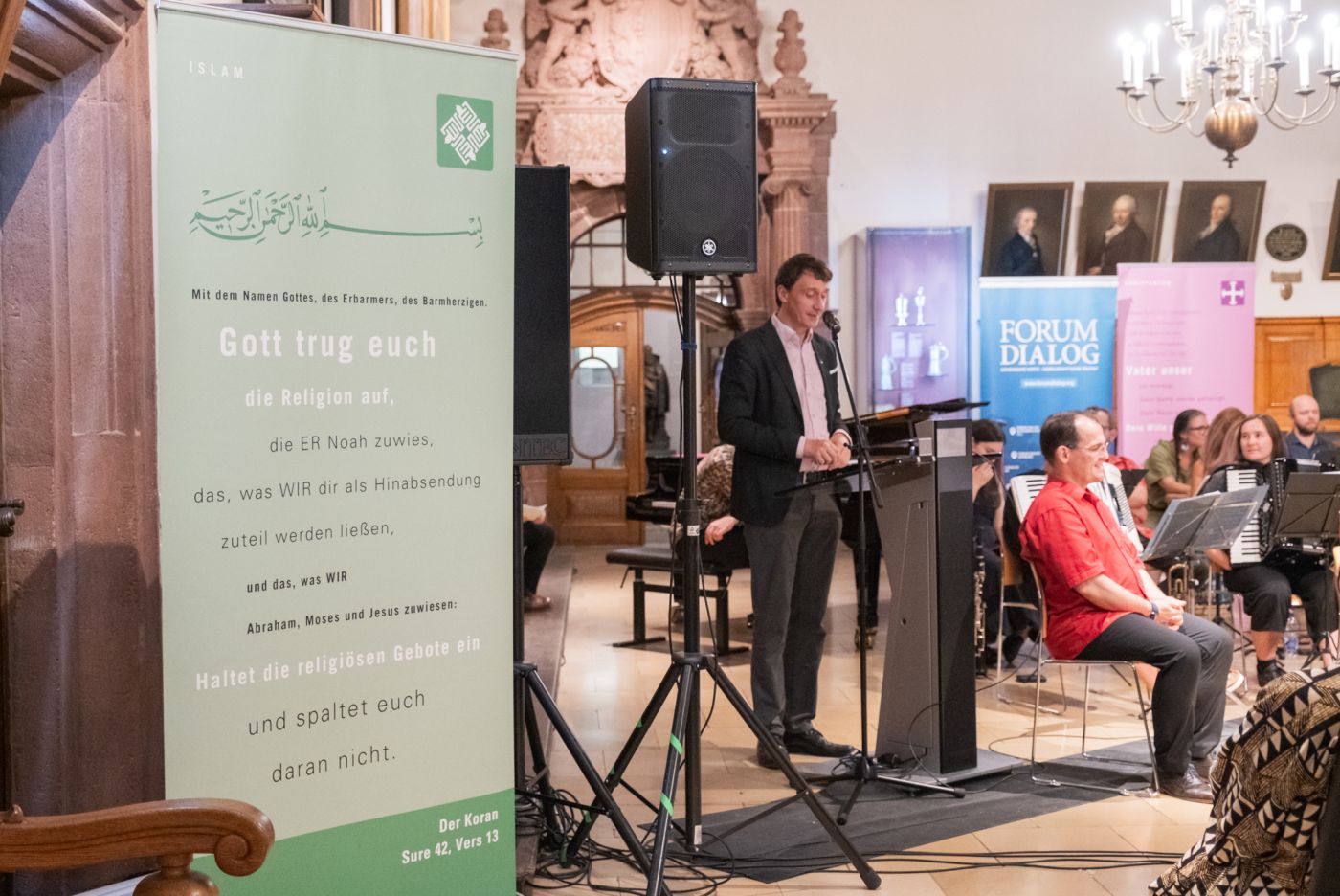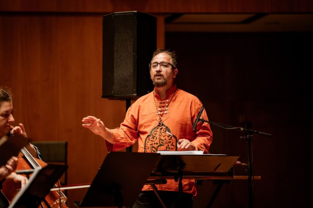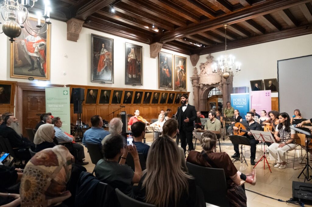 „Trialog der Religionen“ – Konzert des Ensembles am 16.11.2024 im Museum der Bildenden Künste: Gemeinsam mit dem Gewandhauschor, dem syrischen Sänger Jawad Seif und dem in Jerusalem geborenen Sänger und Dirigenten Yoed Sorek gestalteten wir einen beeindruckenden Abend mit geistlicher und weltlicher Vokal- und Instrumentalmusik. Die Werke waren in den Kulturen und Traditionen der drei abrahamitischen Religionen – Judentum, Christentum und Islam – verwurzelt.