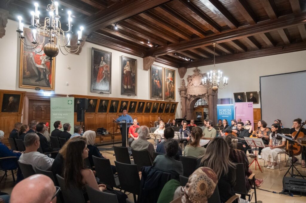Die Premiere des „Klänge der Hoffnung“ Jugendorchesters im Zeitgeschichtlichen Forum fand im Rahmen der 16. Jüdischen Woche Leipzig statt. Junge Musiker*innen mit vielfältigen kulturellen Hintergründen präsentierten Musik aus verschiedenen Traditionen und Religionen. Es war ein Abend voller Emotion, Begegnung und musikalischer Vielfalt. Das Jugendorchester wurde im April2025 von der Transkulturellen Musikforum gGmbH gegründet, inspiriert vom „Klänge der Hoffnung“ Orchester.